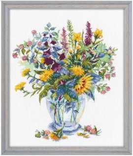 Набор Букет с одуванчиками (артикул 1072-O) ТМ Овен содержит все необходимые материалы для вышивания крестиком: канву Zweigart Aida 16 ct. (белая), мулине 100% хлопок, иглу, символьную схему и инструкцию.