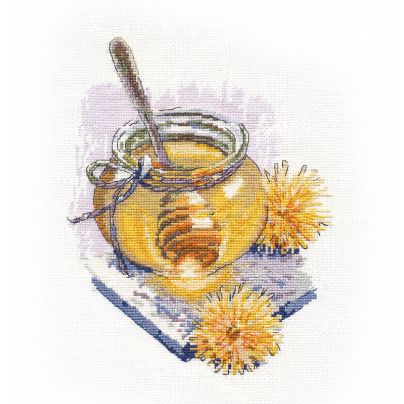 Набор Весенний мёд (артикул 1355-O) ТМ Овен содержит все необходимые материалы для вышивания крестиком: канву Zweigart Aida 16 ct., мулине ПНК им. Кирова, иглу, символьную схему и инструкцию.