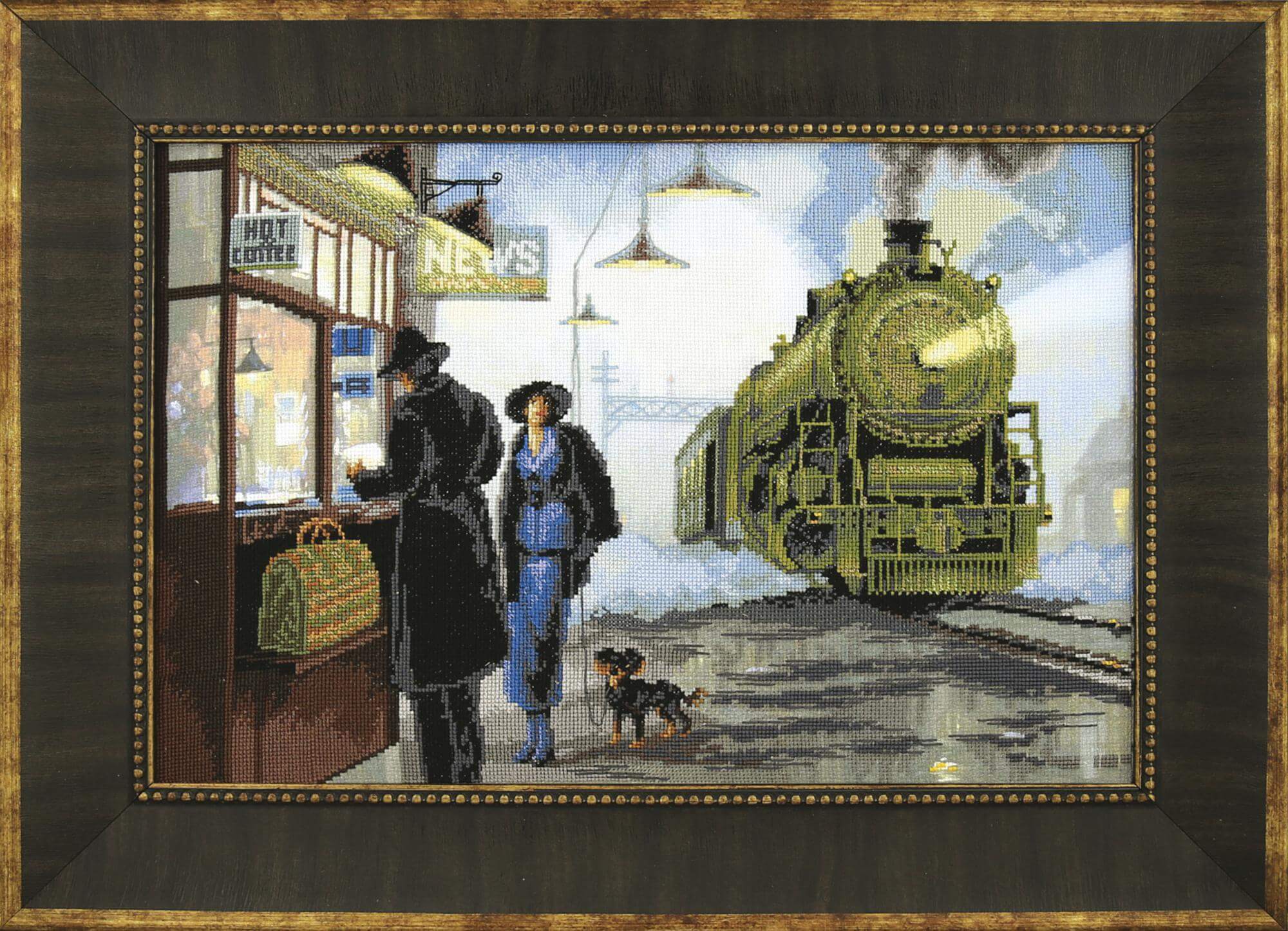 Набор для вышивания Вечерний экспресс содержит подробную инструкцию вместе с цветной символьной схемой, канву с фоновым рисунком, нитки мулине Madeira - 32 цв. и иглу. Размер вышивки 38х25.5см.