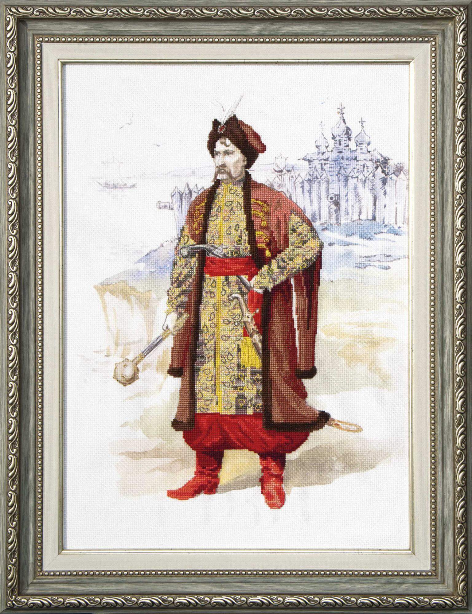 Набор для вышивания Гетьман содержит подробную инструкцию вместе с цветной символьной схемой, канву с фоновым рисунком, нитки мулине Madeira - 21 цвет, бисер Preciosa - 3 цв. и иглы. Размер вышивки 27х38см.