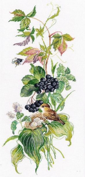 Набор Гнездышко, по иллюстрации Ольги Ионайтис (артикул 1014-O) ТМ Овен содержит все необходимые материалы для вышивания крестиком: канву Aida 18 ct. (белая), мулине 100% хлопок, иглу, символьную схему и инструкцию.