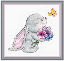Набор Зайчонок (артикул 980-O) ТМ Овен содержит все необходимые материалы для вышивания крестиком: канву Aida 16 ct. (белая), мулине ПНК им. Кирова, иглу, символьную схему и инструкцию.