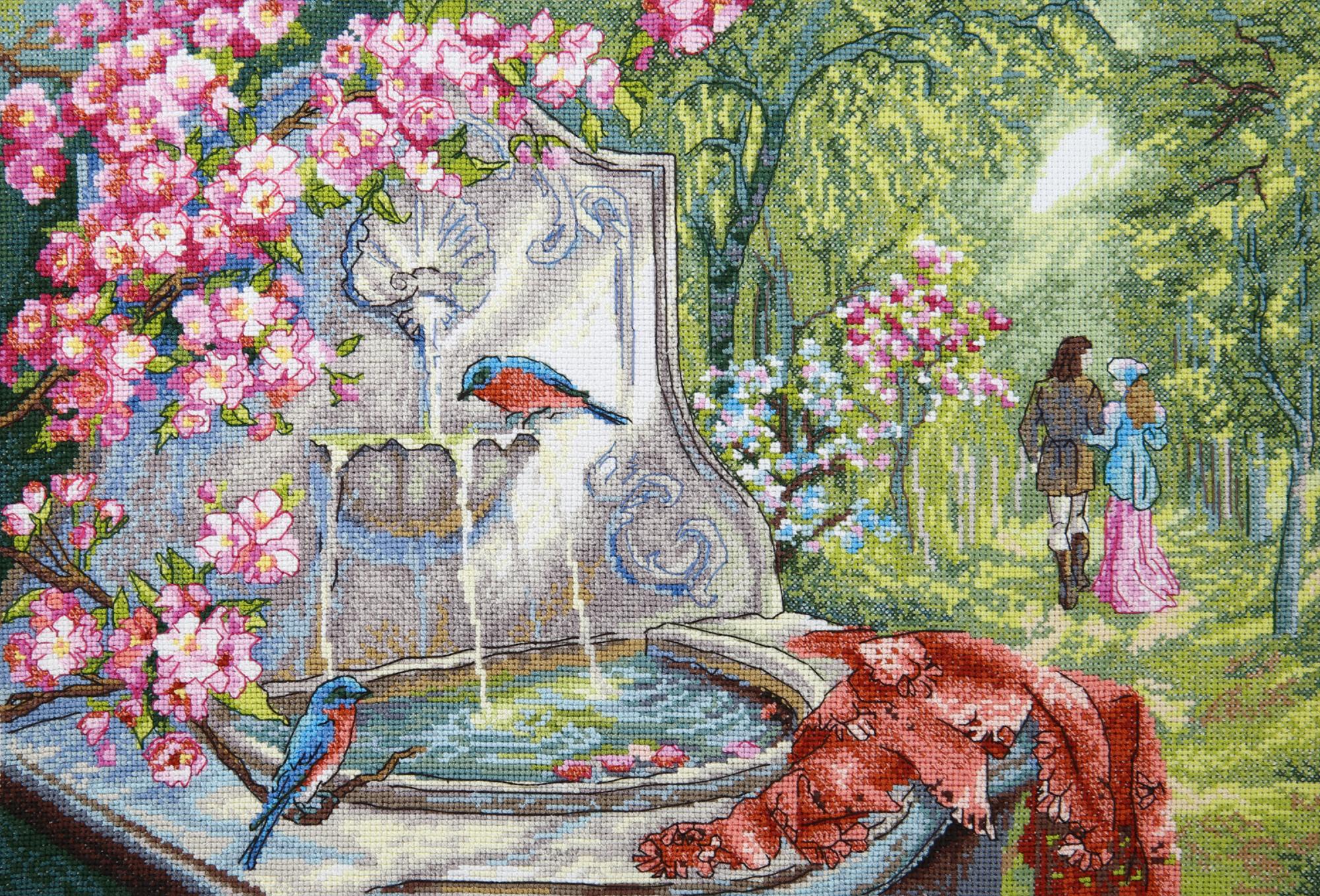 В набор для вышивки крестиком Лазурные птицы, М-370, ТМ Чарівна мить входит канва Aida 16, мулине Madeira (46 цветов), игла, цветная символьная схема и инструкция.