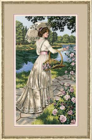 СНЯТО С ПРОИЗВОДСТВА. Комплектация набора для вышивания крестом Летняя прогулка, ТМ Dimensions: инструкция, цветная символьная схема, канва Aida 18 (айвори), хлопковое мулине Dimensions - 48 цветов и игла.
