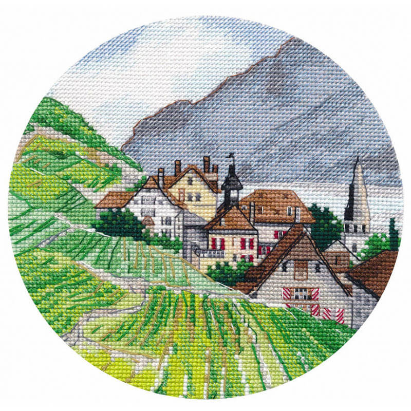 Набор Миниатюра. Альпы (артикул 1286-O) ТМ Овен содержит все необходимые материалы для вышивания крестиком: канву Aida 16 ct., мулине 100% хлопок, иглу, символьную схему и инструкцию.