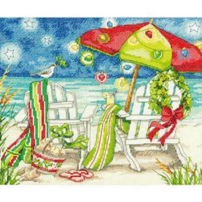 Набор для вышивки крестом Рождественские пляжные стулья, ТМ Dimensions, арт. 1058979, 30.4x25.4см