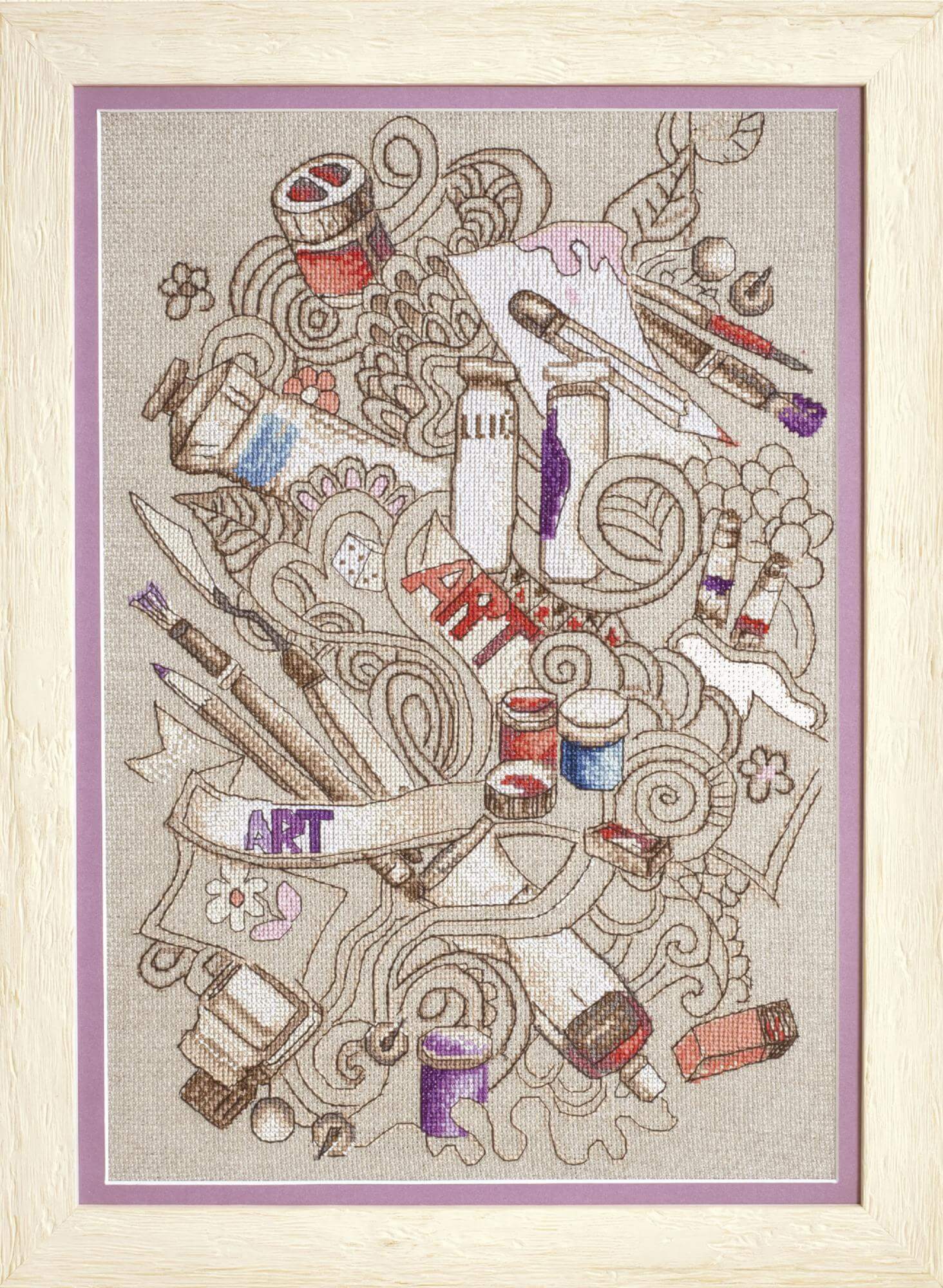 Набор для вышивания Творческое вдохновение содержит подробную инструкцию вместе с цветной символьной схемой, канву Aida 14 лен, нитки мулине Madeira - 22 цв. и иглу. Размер вышивки 28х41см.