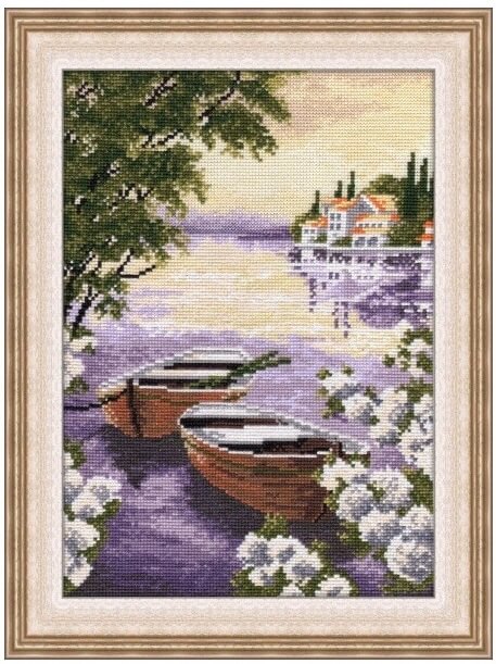 Набор Тихая заводь (артикул 600-O) ТМ Овен содержит все необходимые материалы для вышивания крестиком: канву Aida 14 ct. (белая), мулине 100% хлопок, иглу, символьную схему и инструкцию.