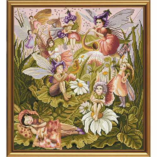 Набор для вышивки счетным крестом Эльфы компании Новая Слобода состоит из ниток мулине Palmira 180, белой канвы Aida 16, иглы для вышивания, цветной схемы и подробной инструкции.