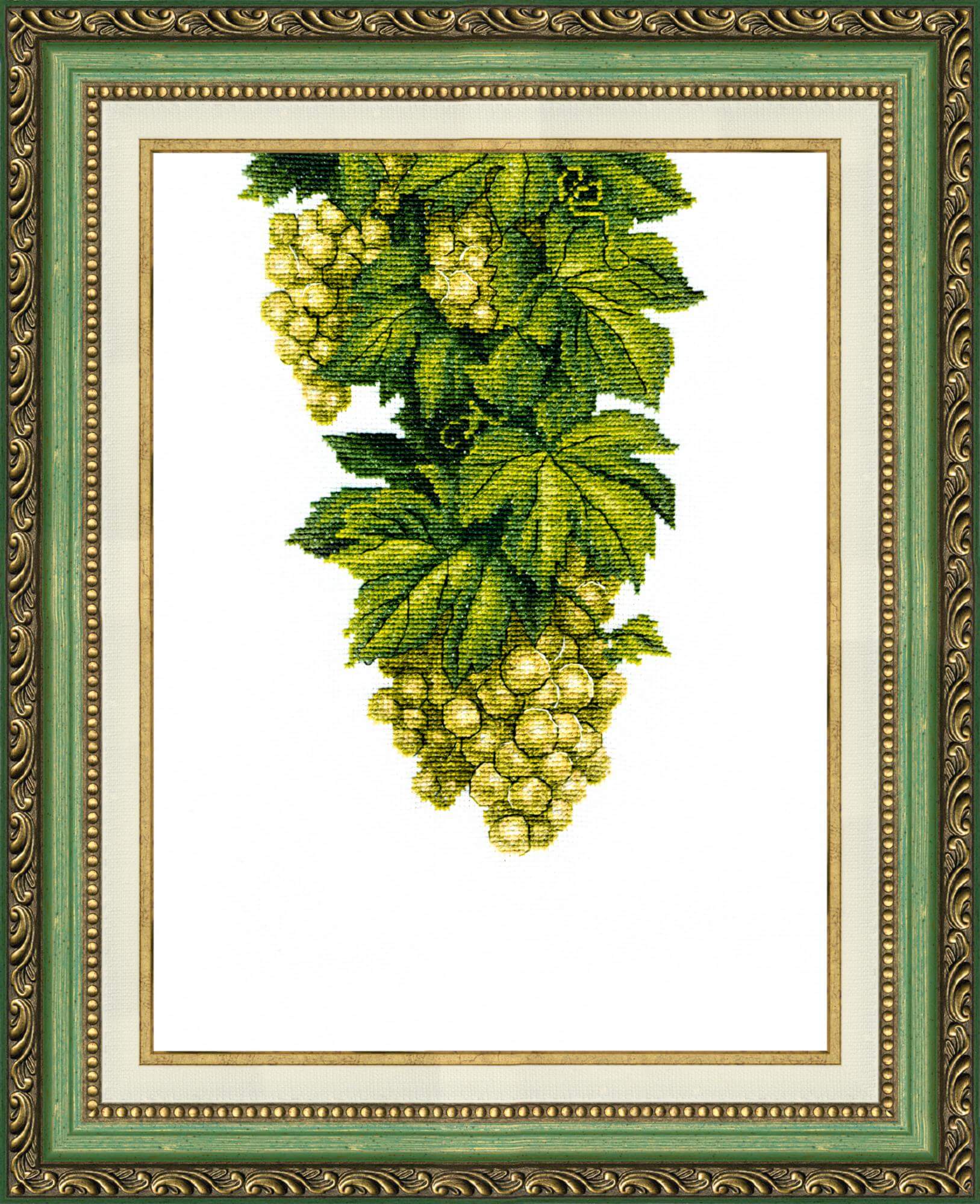 Набор для вышивания крестом Янтарный виноград содержит подробную инструкцию и цветную символьную схему, канву Aida 16, х/б мулине Bestex - 12 цветов и иглу.