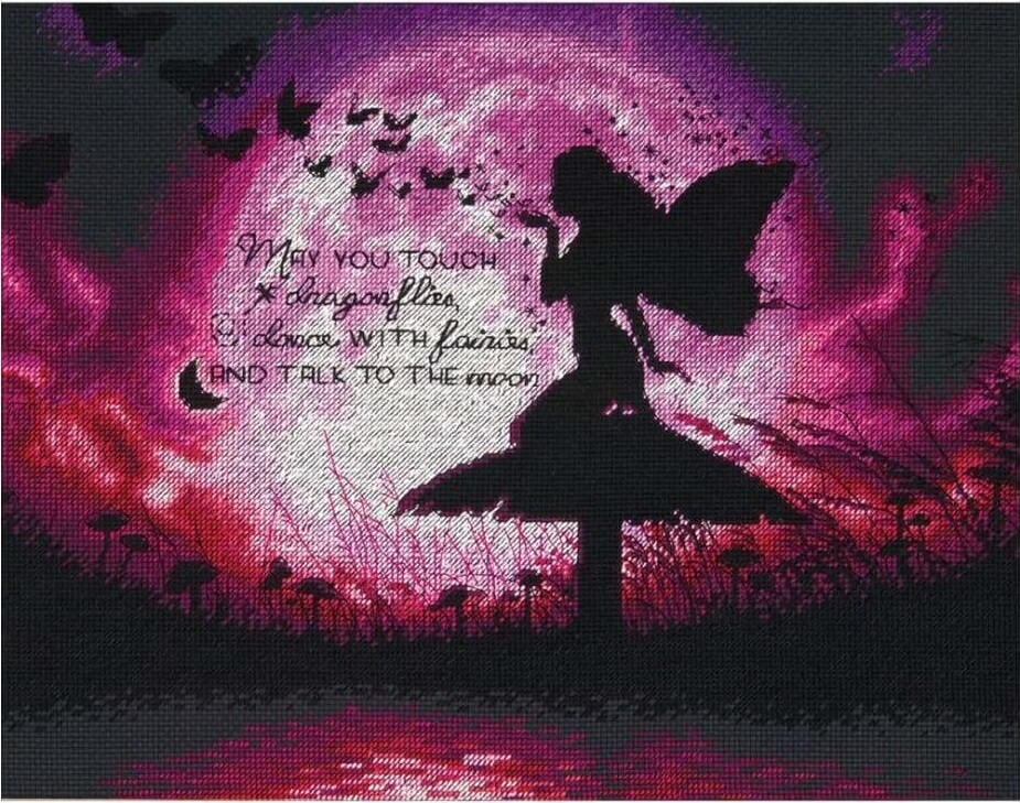 Набор для вышивки крестом Butterfly Fairy, Фея бабочек, ТМ Dimensions (США) содержит материалы: канву Aida 14 (черная), хлопковое мулине Dimensions, инструкцию, цветную символьную схему и иглу.