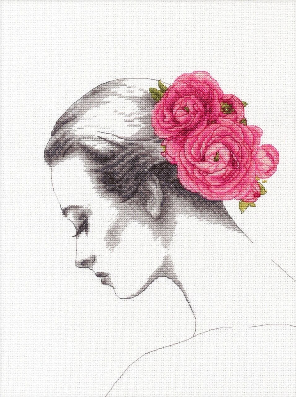 Набор для вышивки крестом Floral Portrait, Цветочный портрет, ТМ Dimensions (США) содержит материалы: канву Aida 14 (белая), хлопковое мулине Dimensions, инструкцию, цветную символьную схему и иглу.