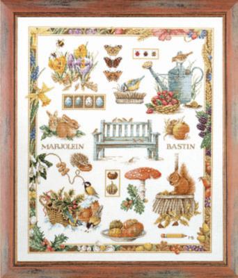 В набор для вышивания крестом M.B.Collage, Коллаж LanArte (Бельгия) входит: инструкция, символьная ч/б схема, равномерная ткань Zweigart №27 цвета слоновой кости, х/б нитки мулине DMC - 47 цветов и игла. Размер вышитой картины: 52x63см