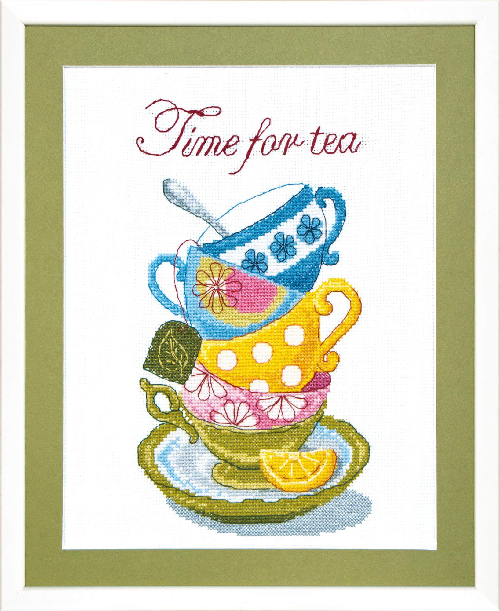 Набор для вышивания крестом Time for tea содержит подробную инструкцию и цветную символьную схему, канву Aida 14, х/б мулине Bestex - 22 цвета и иглу.