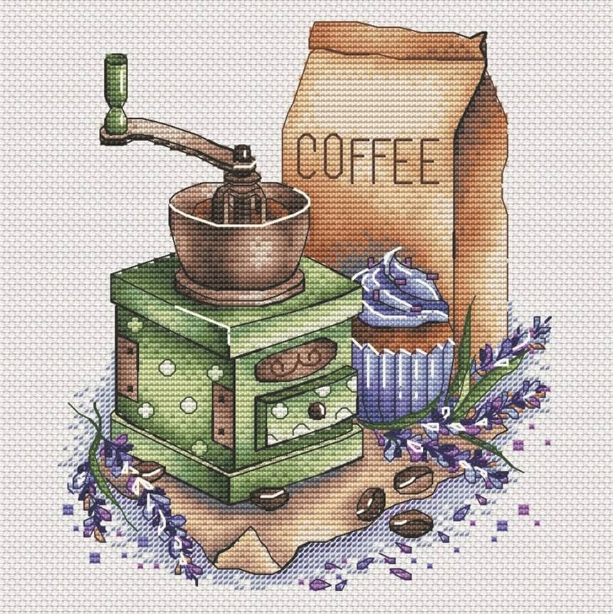 Набор для вышивки крестом Кофемолка с лавандой, арт. А038-SA, ТМ SA-stitch комплектуется белой канвой Zweigart Aida 14 или Linda 27 на выбор (укажите в комментариях при оформлении заказа), мулине DMC, символьной схемой и иглой.