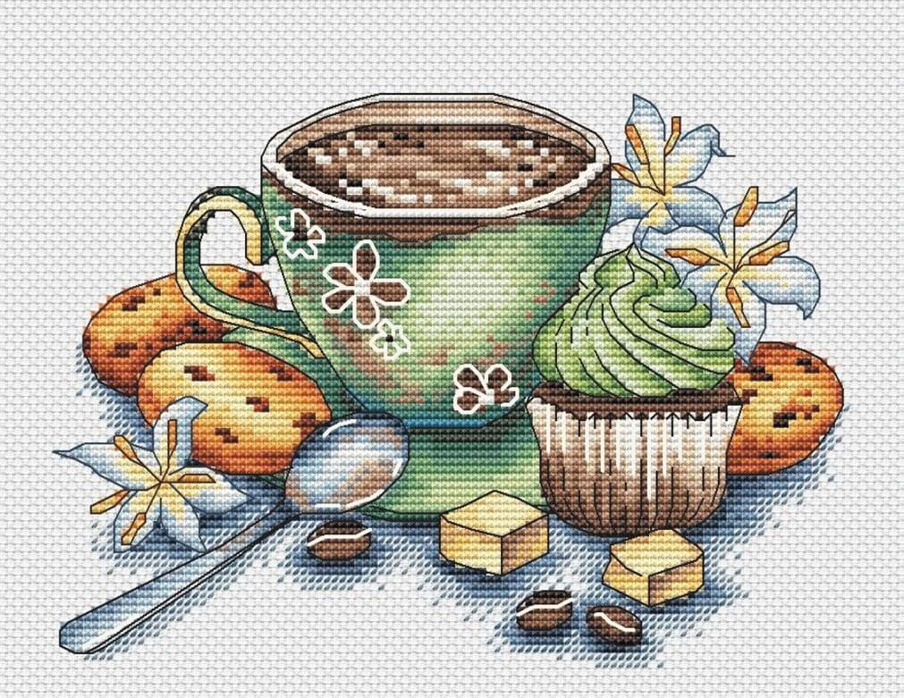 Набор для вышивки крестом Чашечка с кофе, арт. А012-SA, ТМ SA-stitch комплектуется белой канвой Zweigart Aida 14 или Linda 27 на выбор (укажите в комментариях при оформлении заказа), мулине DMC, символьной схемой и иглой.