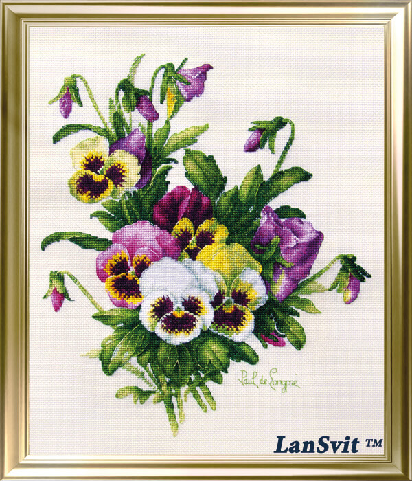 Набор для вышивания Анютины глазки ТМ ЛанСвіт содержит все необходимые материалы: канва Zweigart Aida 16 с обработанными краями, мулине DMC, игла John James, символьная схема подробная инструкция и фото готовой работы.