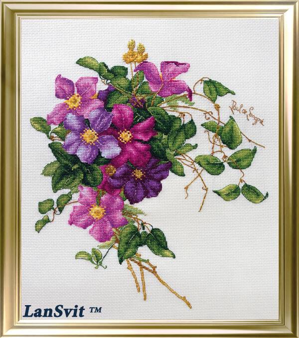 Набор для вышивания Клематисы ТМ ЛанСвіт содержит все необходимые материалы: канва Zweigart Aida 16 с обработанными краями, мулине DMC, игла John James, символьная схема подробная инструкция и фото готовой работы.