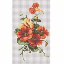 Набор для вышивки счетным крестом Композиция с цветами (BM3002) компании Luca-S содержит изображение готовой работы, схему, мулине Anchor, канву Zweigart Aida 18, иглу и инструкцию на русском языке.