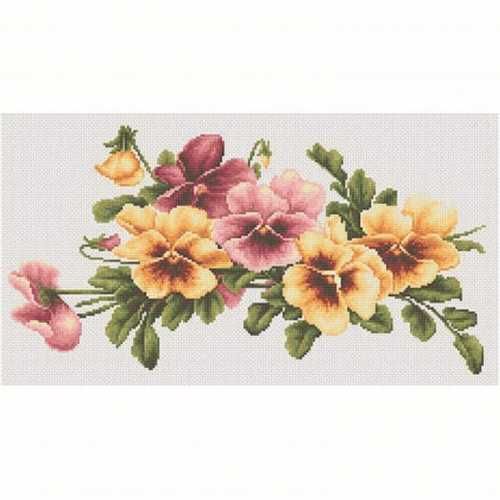 Набор для вышивки счетным крестом Композиция с цветами (BM3004) компании Luca-S содержит изображение готовой работы, схему, мулине Anchor, канву Zweigart Aida 18, иглу и инструкцию на русском языке.