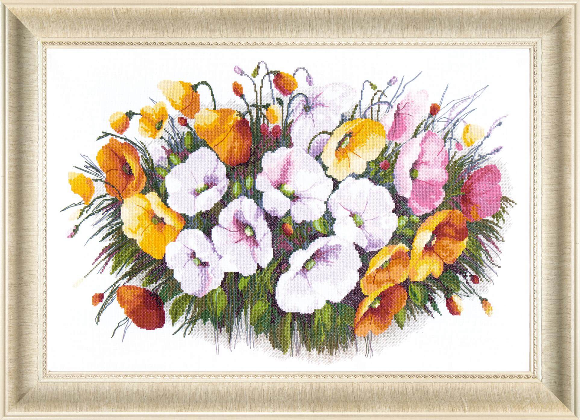 Набор для вышивания крестом Букет для любимой содержит подробную инструкцию и цветную символьную схему, канву Aida 14, х/б мулине Bestex - 32 цвета и иглу.