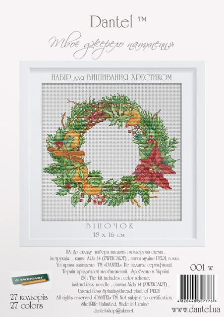 Набор для вышивки крестом Веночек, 18х16см, D-001 W, Dantel
