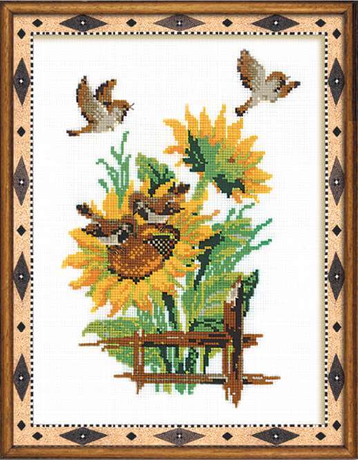 Набор для вышивания крестом Воробьи (арт. Р-0453) ТМ Риолис содержит шерстяные нитки, канву (10 Aida Zweigart белая), иглу и подробную инструкцию.