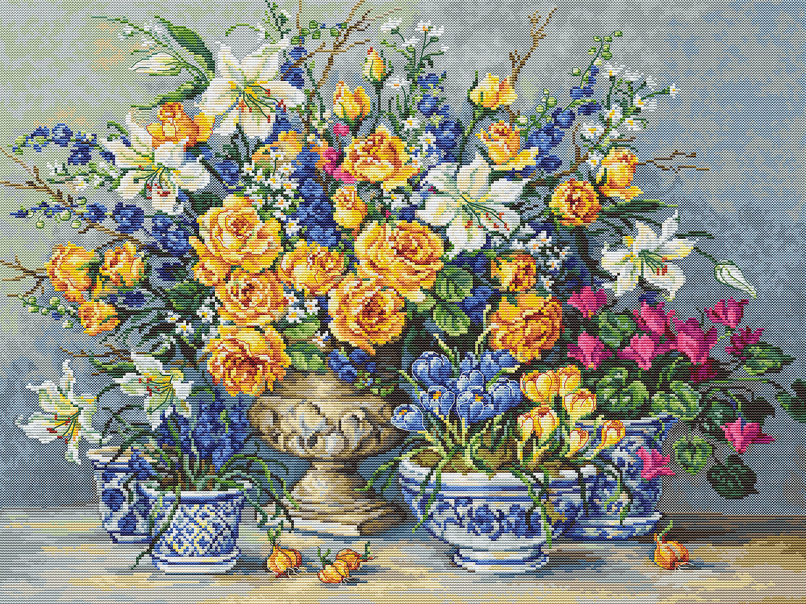 Набор для вышивки счетным крестом Из сада Габриель (B2392) компании Luca-S содержит изображение готовой работы, схему, мулине Anchor, канву Zweigart Aida 18 ct. (цвет 101), иглу и инструкцию на русском языке.