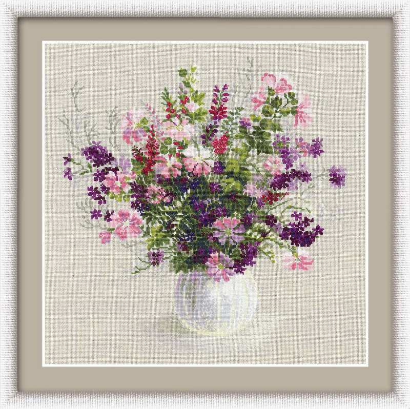 Набор для вышивания крестом Летний букет (арт. Р-1010) ТМ Риолис содержит шерстяные нитки, канву (14 Rustico Aida Zweigart лён), иглу и подробную инструкцию.