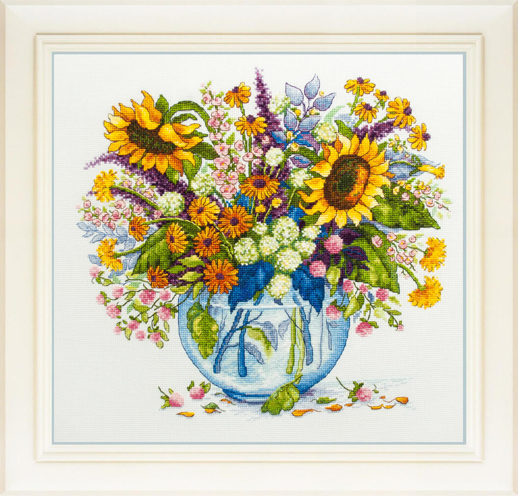 Набор для вышивки крестом Летний букет, VN-051, ТМ OLanTA (Картины Бисером) содержит канву Aida Zweigart 16, мулине DMC, иглу и схему для вышивки крестом.