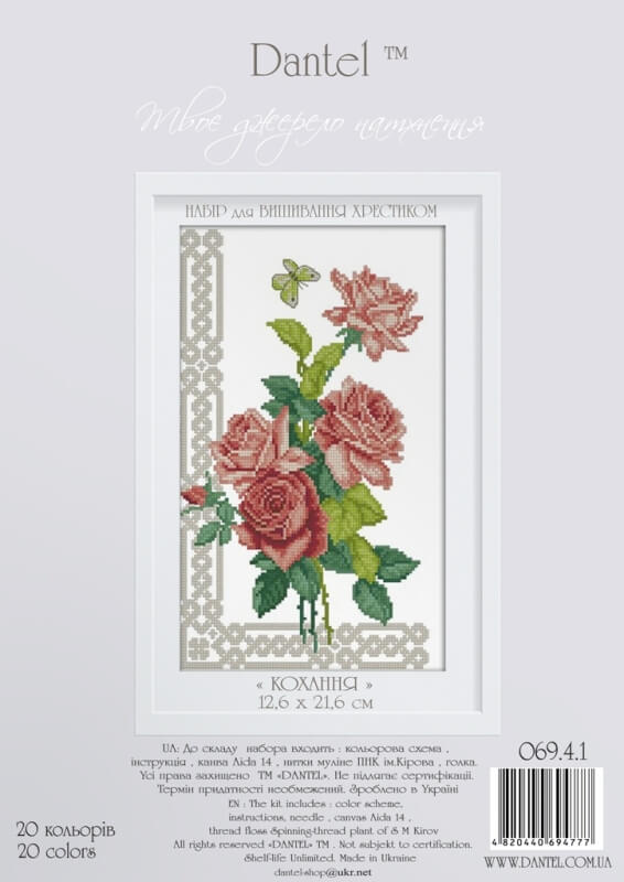 Набор для вышивания крестом Любовь ТМ Dantel содержит мулине ПНК им. Кирова, канву Aida 14, символьную схему, иглу и инструкцию.