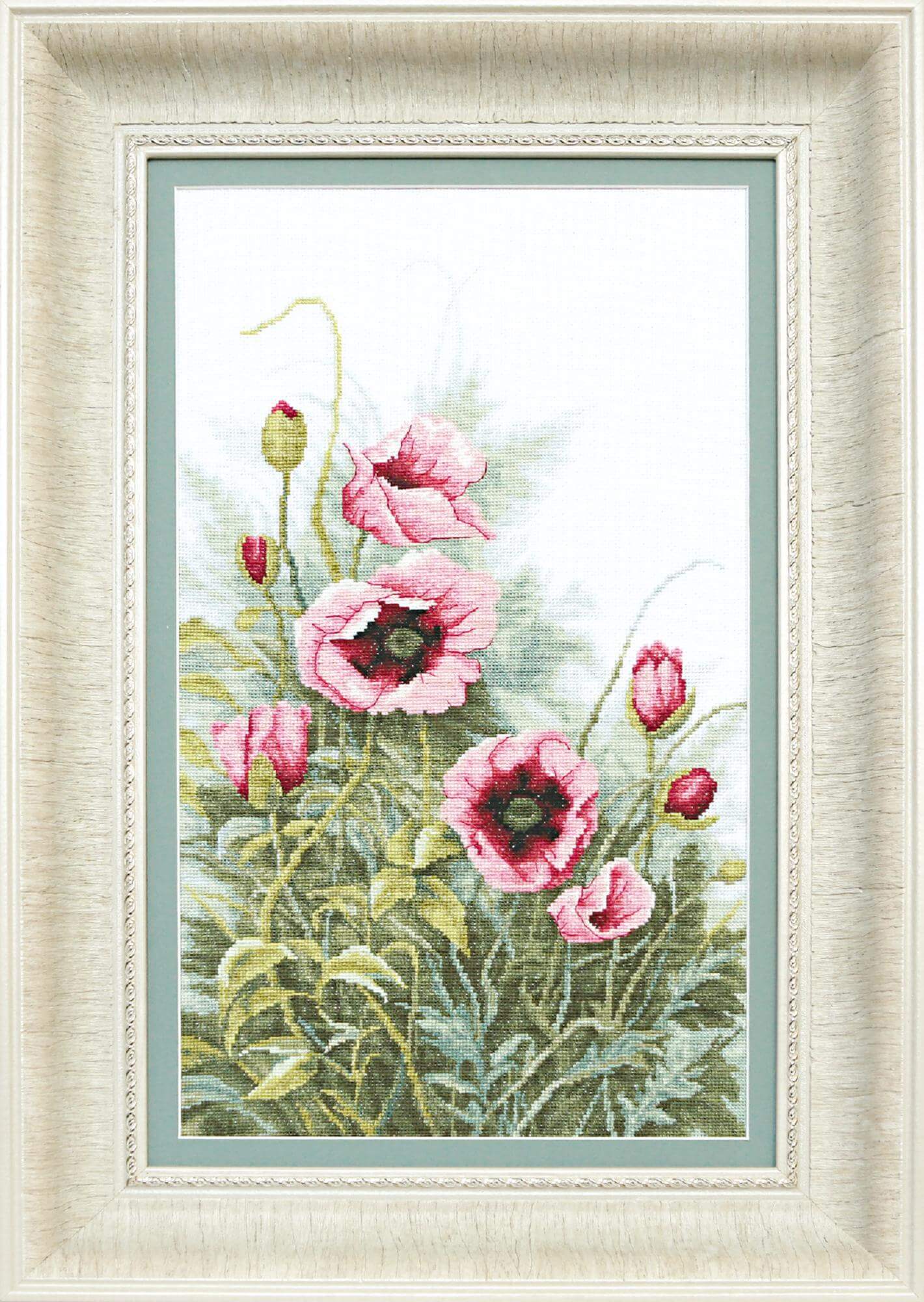 Набор для вышивания Маков цвет содержит подробную инструкцию вместе с цветной символьной схемой, канву Aida 16, нитки мулине Madeira - 25 цв. и иглу. Размер вышивки 24х42см.