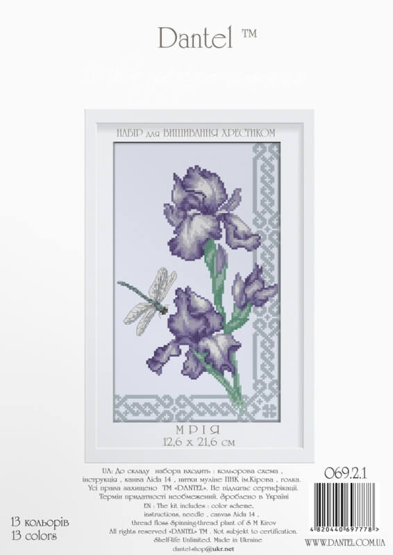 Набор для вышивания крестом Мечта ТМ Dantel содержит мулине ПНК им. Кирова, канву Aida 14, символьную схему, иглу и инструкцию.
