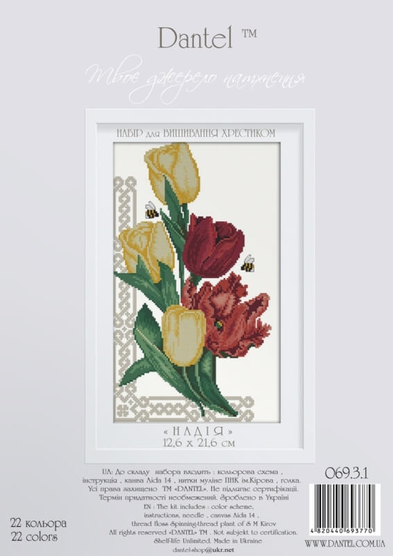 Набор для вышивания крестом Надежда ТМ Dantel содержит мулине ПНК им. Кирова, канву Aida 14, символьную схему, иглу и инструкцию.