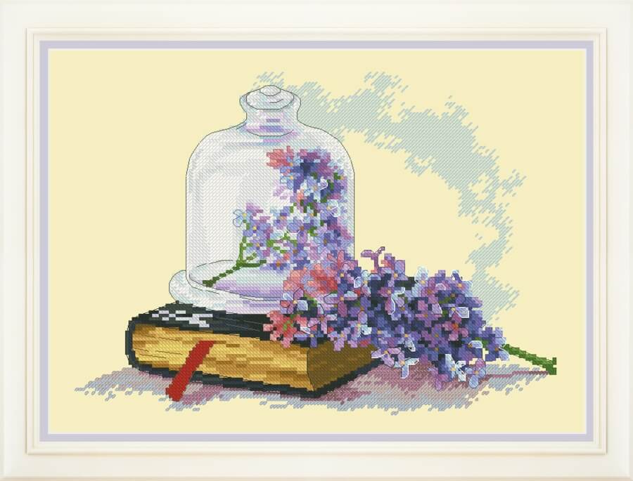 Набор для вышивки крестом Натюрморт с сиренью, VN-060, ТМ OLanTA (Картины Бисером) содержит канву Aida Zweigart 16, мулине Peri, иглу и схему для вышивки крестом.