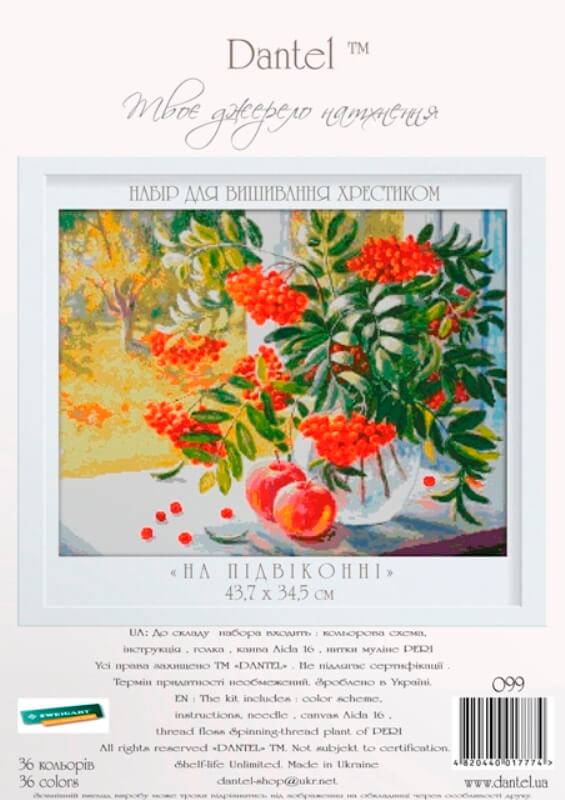 Набор для вышивания крестом На подоконнике ТМ Dantel содержит мулине PERI, канву Aida 16, символьную схему, иглу и инструкцию.