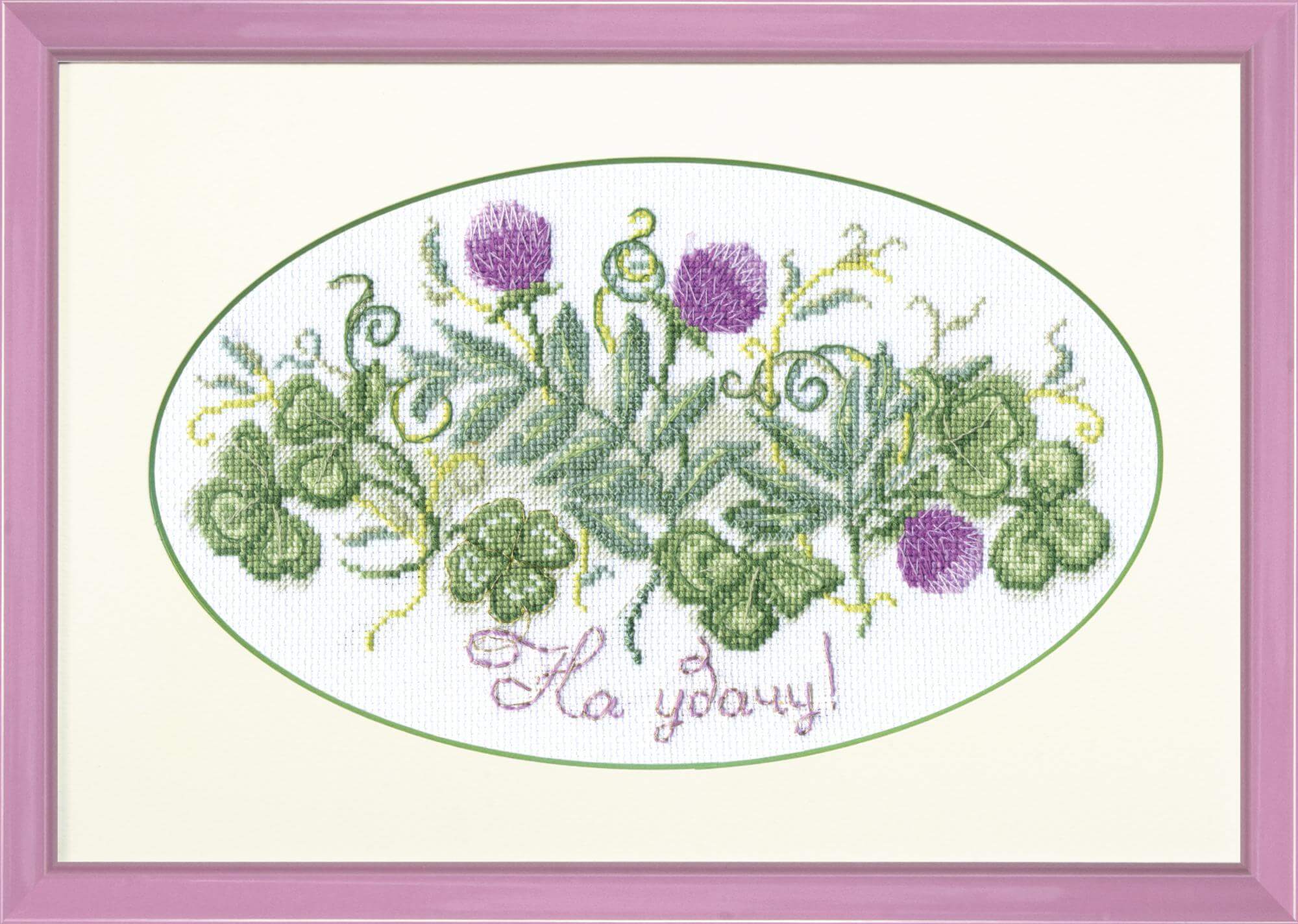 Набор для вышивания крестом На удачу содержит подробную инструкцию и цветную символьную схему, канву Aida 16, х/б мулине Bestex - 11 цветов и иглу.