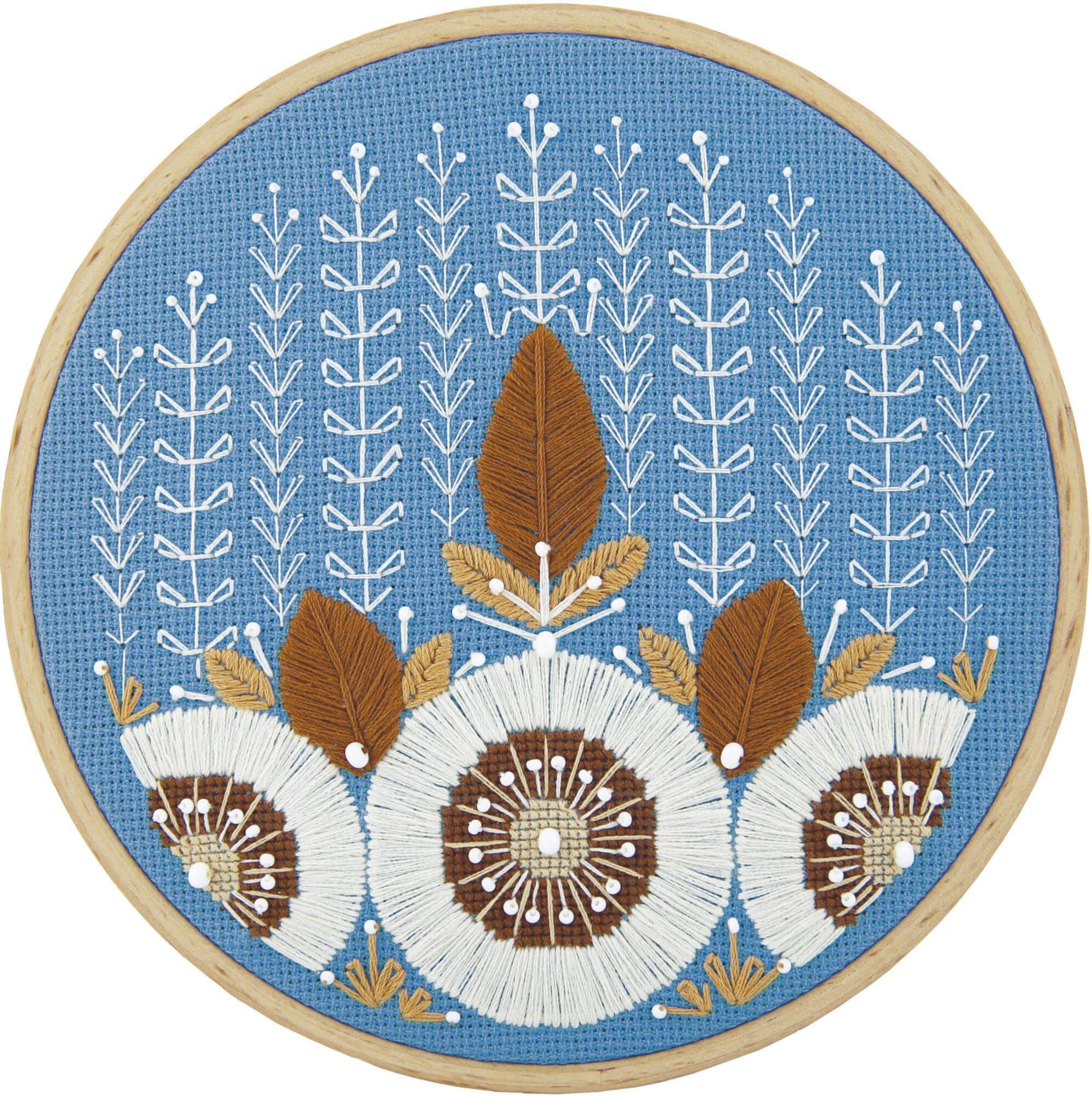 Набор для вышивания Переплетение нитей содержит подробную инструкцию вместе с цветной символьной схемой, канву Aida 16 (голубая), хлопковые нитки мулине Bestex - 6 цв., бисер Preciosa - 1 цвет (3 размера), пяльца и иглы. Размер вышивки 16х16см.