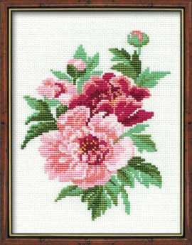 Набор для вышивания крестом Пионы (арт. Р-0815) ТМ Риолис содержит шерстяные нитки, канву (10 Aida Zweigart белая), иглу и подробную инструкцию.