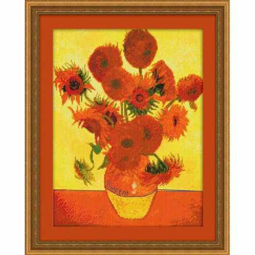 Набор для вышивки крестом Подсолнухи состоит из немецкой канвы Zweigart Аида 16, мулине DMC - 42 цвета, иглы, символьной схемы и каталога наборов для вышивания харьковского производителя ТМ Юнона. По мотивам В. Ван Гога.
