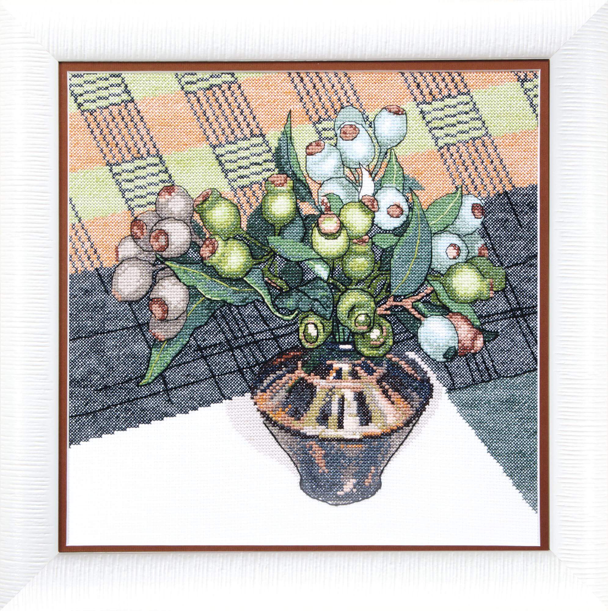 Набор для вышивания крестом Райские плоды содержит подробную инструкцию и цветную символьную схему, канву Aida 14, х/б мулине Bestex - 26 цветов и иглу.