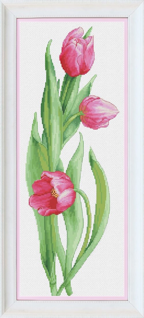 Набор для вышивки крестом Розовые тюльпаны, VN-050, ТМ OLanTA (Картины Бисером) содержит канву Aida Zweigart 16, мулине Peri, иглу и схему для вышивки крестом.