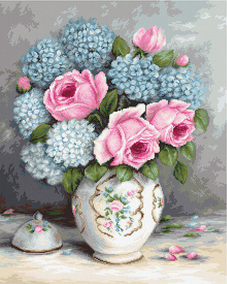 Набор для вышивки крестом Розы и гортензии, 35x44см, BA2322, Luca-S