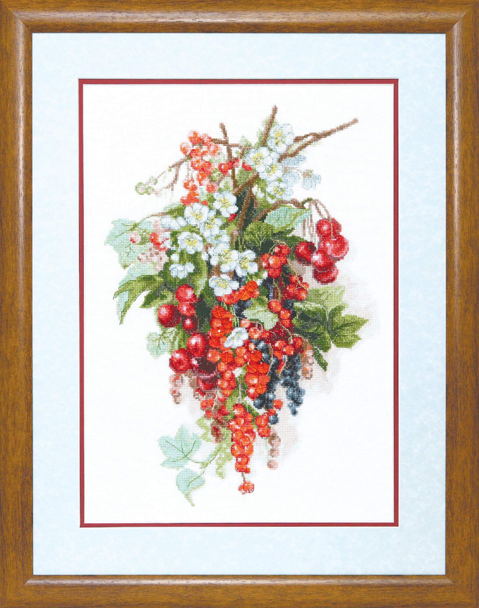 Набор для вышивания Сладкая ягода содержит подробную инструкцию вместе с цветной символьной схемой, канву Aida 16, нитки мулине Madeira - 32 цв., бисер Preciosa - 1 цвет, бусины Crystal Art - 1 цвет и иглы. Размер вышивки 26х37см.