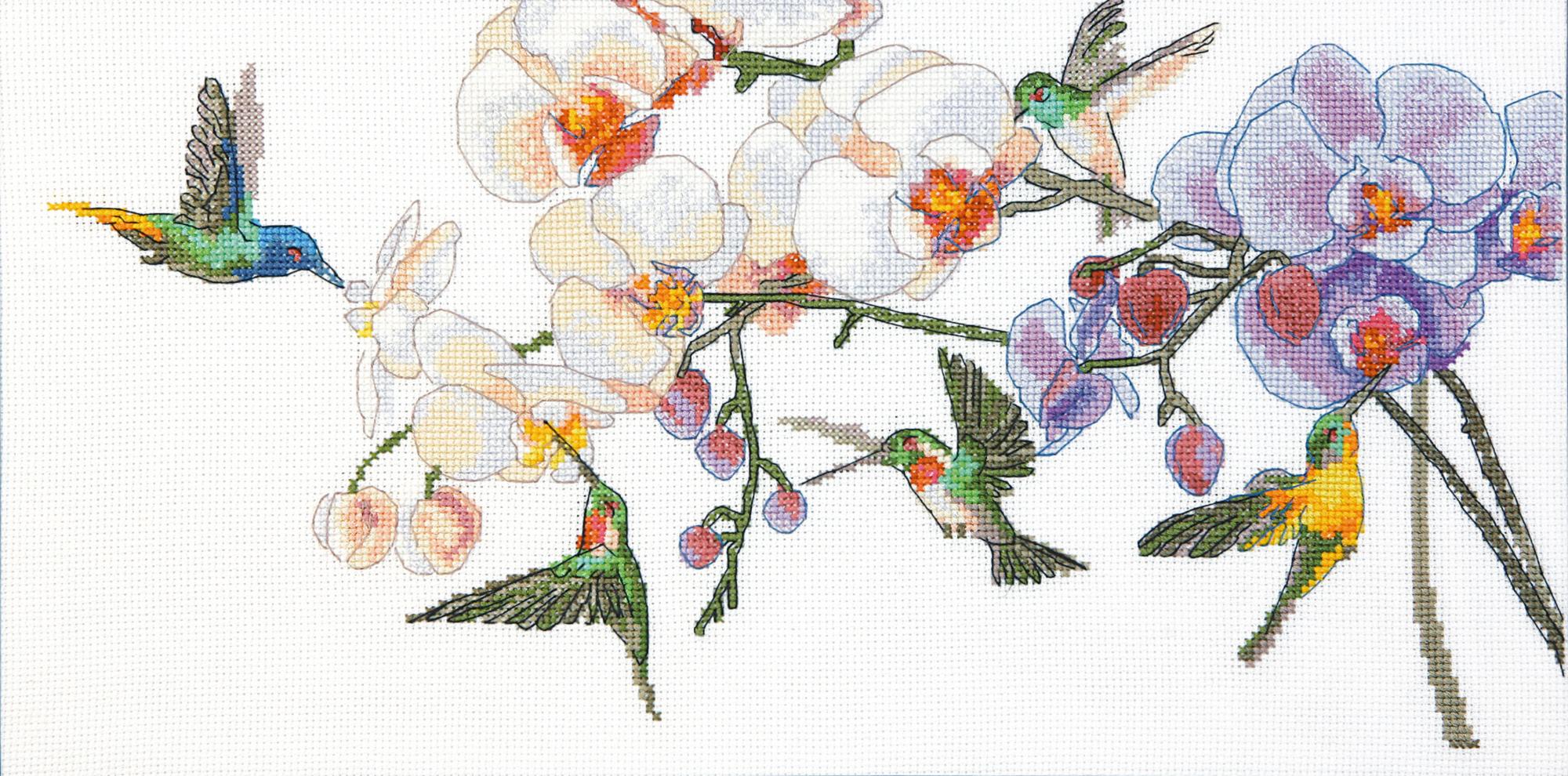 В набор для вышивки крестиком Тропический аромат, М-449, ТМ Чарівна мить входит ткань Aida 14 Zweigart, мулине Madeira (31 цвет), игла, цветная символьная схема и инструкция.