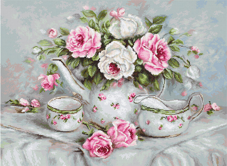 Набор для вышивки счетным крестом Чайный сервиз и розы (BA2317) компании Luca-S содержит изображение готовой работы, схему, мулине Anchor, канву Aida 16 ct. Zweigart (101), иглу и инструкцию на русском языке. Дата выхода набора - январь 2018.