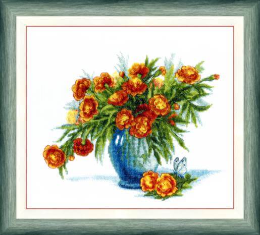 Набор для вышивания крестом Чернобривцы содержит подробную инструкцию и цветную символьную схему, канву Aida 16, х/б мулине Bestex - 25 цветов и иглу.