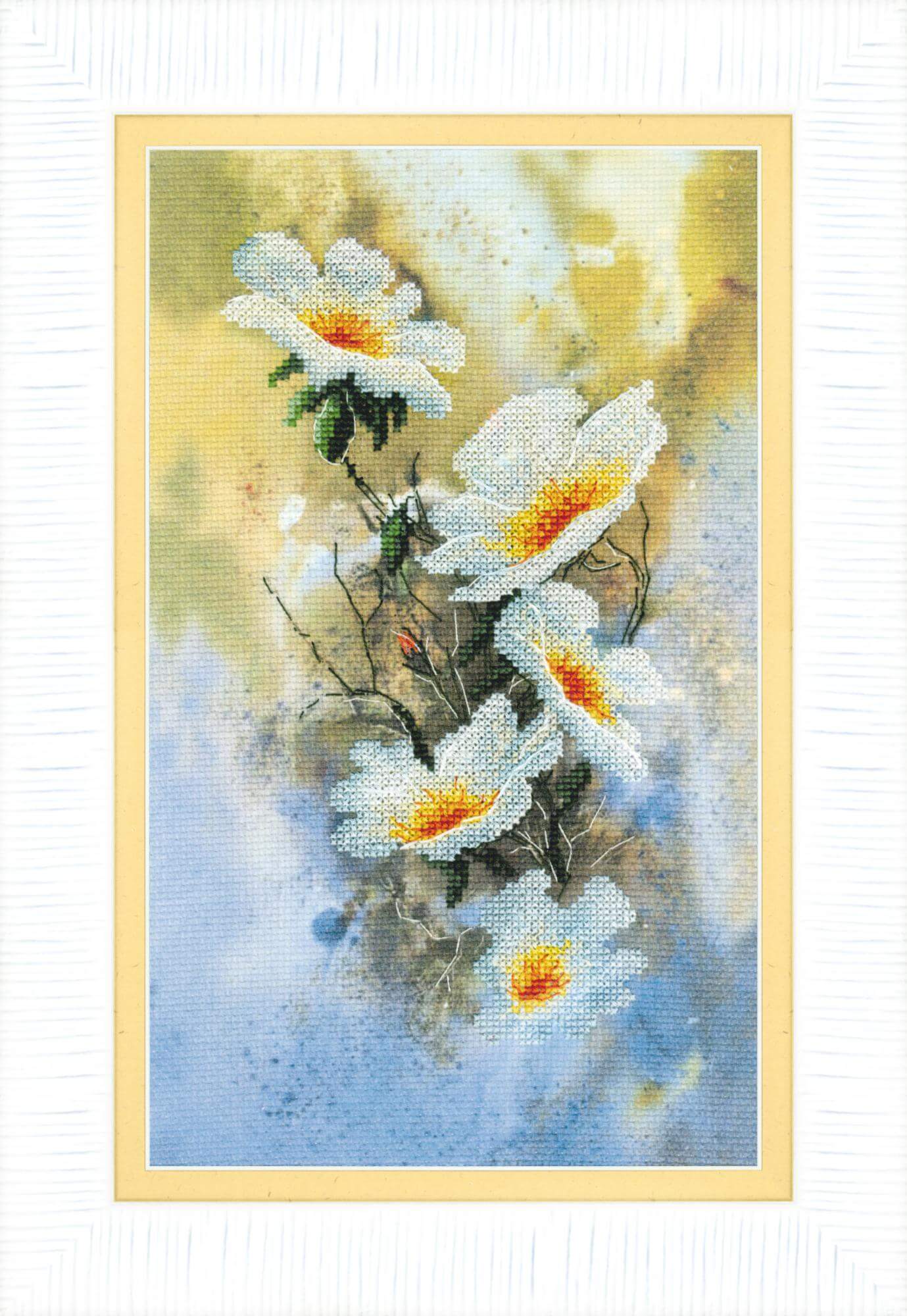 Набор для вышивания Шиповник содержит подробную инструкцию вместе с цветной символьной схемой, канву с фоновым рисунком, нитки мулине Madeira - 14 цв. и иглу. Размер вышивки 16.5х27.5см.