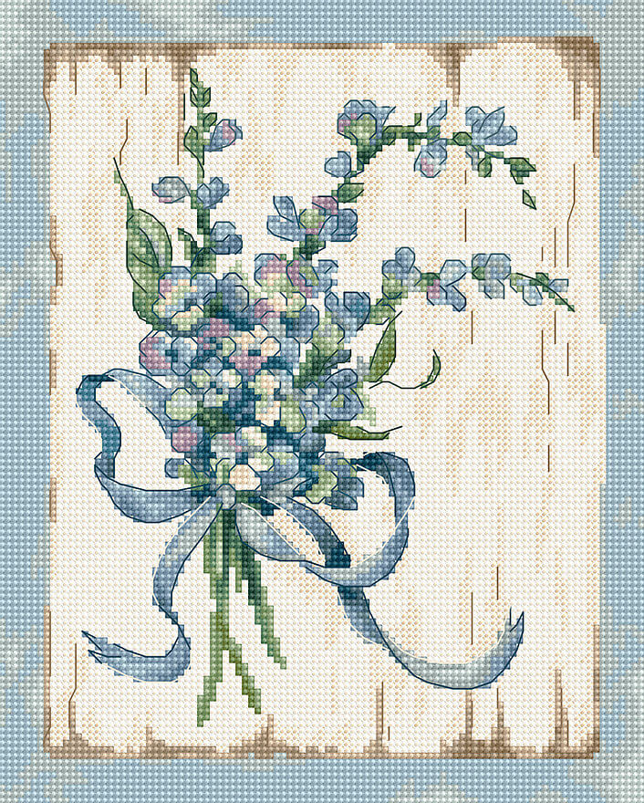 Набор для вышивки счетным крестом BLUE I, Незабудки (LETI-974) компании Luca-S содержит изображение готовой работы, схему, мулине Anchor, канву Zweigart Aida 16ct., иглу и инструкцию на русском языке.