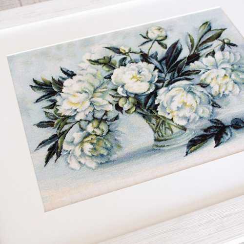 Набор для вышивки счетным крестом Пионы (B517) компании Luca-S содержит изображение готовой работы, схему, мулине Anchor, канву Zweigart Aida 16, иглу и инструкцию на русском языке.